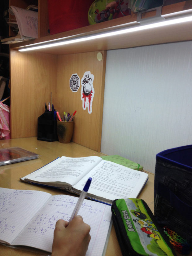 - Si votre enfant est déjà assez âgé et qu'il est temps de faire ses devoirs, vous devez lui fournir un éclairage suffisant. Parfois, les dimensions de la pépinière les obligent à utiliser des meubles tels qu'un lit mansardé. Au rez-de-chaussée il y a un bureau qui ne peut pas se vanter de grandes tailles. Mettre une lampe de bureau dessus signifie aussi enlever une certaine quantité d'espace libre. Mais s'il y a un toit au-dessus de votre tête, vous pouvez essayer de coller un ruban de diode à lumière blanche neutre qui fera parfaitement l'affaire;