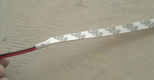 - Presque tout le ruban est équipé d'une couche collante. Cela a été pris en charge fabricants. Pour le coller au plan souhaité, il suffit de séparer la couche de protection de quelques centimètres, d'appuyer doucement sur le ruban, puis d'avancer progressivement jusqu'au bout. Avec cette installation, il est très important de bien préparer la surface - pour se débarrasser de la saleté, dégraisser, essuyer et commencer immédiatement à coller jusqu'à ce qu'elle soit époussetée. Vous ne pouvez utiliser la couche collante "native" qu'une seule fois. Par conséquent, pensez à l'avance à l'emplacement exact de la bande. La deuxième fois, elle ne colle pas. En principe, cette méthode permet au ruban de rester même sur des surfaces rugueuses;
