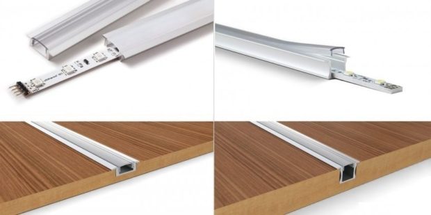 - Le moyen de fixation le plus fiable est l'utilisation de profilés en aluminium, mortaisés, posés ou inclinés. Cela vous permet de monter la bande à n'importe quel endroit;