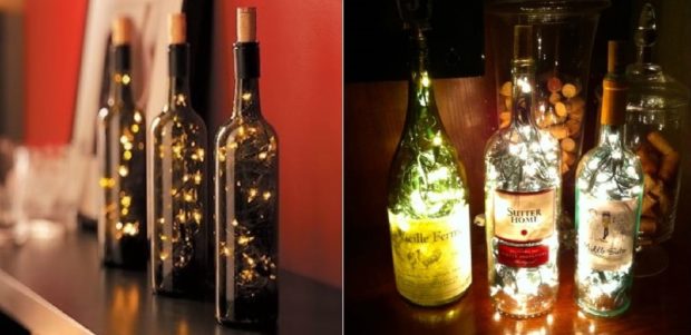 - C'est dans la cuisine que vous pouvez placer de belles bouteilles en verre sur les étagères, à l'intérieur desquelles un fil de diode décoratif est posé.