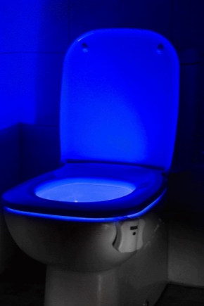 - Récemment, il est devenu très populaire d'utiliser l'éclairage pour divers types de plomberie. Et nous parlons non seulement de l'éclairage de la salle de bain, qui est situé sur l'écran de protection, mais aussi de l'éclairage de l'évier en collant du ruban adhésif sur son plan inférieur autour du périmètre, ainsi que de l'éclairage des toilettes. C'est beau ou pas - jugez par vous-même sur la photo;