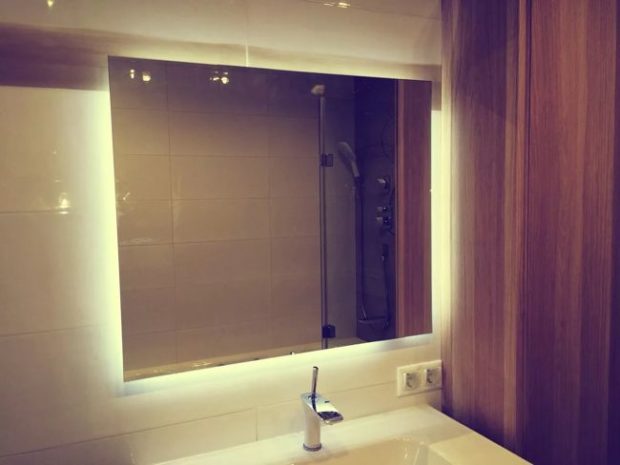 - Bien sûr, non seulement beau, mais aussi rationnel, en collant le ruban un miroir. Après tout, ce n'est pas pour rien que des miroirs avec un rétro-éclairage LED déjà intégré sont vendus. Leur coût est parfois simplement injustifié, il est donc beaucoup plus économique d'utiliser notre idée. Le ruban peut être placé à la fois sur le périmètre et uniquement sur le côté ou sur les faces supérieure et inférieure. Dans tous les cas, il vous sera commode de vous maquiller et d'effectuer d'autres procédures;