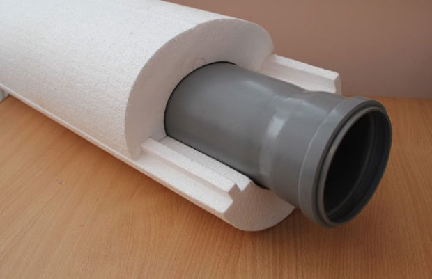 - En polystyrène expansé (polystyrène). Une telle coque se distingue par une densité élevée et, par conséquent, une rigidité élevée. Les cylindres en mousse peuvent être de deux types - avec une pièce de verrouillage sur les deux bords et sans connexion de verrouillage. Un tel appareil de chauffage n'absorbe pratiquement pas l'humidité et se caractérise par d'excellentes propriétés d'isolation thermique. Il peut être utilisé à des températures de -50 à + 80 ° C. Les coques en mousse sont activement utilisées non seulement pour chauffer les égouts, mais aussi pour l'alimentation en eau et les conduits d'air. La rigidité de la structure est suffisante pour isoler les canalisations enfouies dans le sol et résister à sa pression. Le matériau ne perd pas son intégrité même lors de l'affaissement du sol;