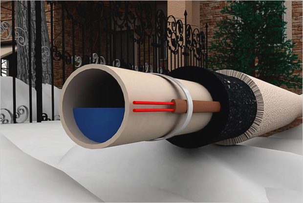 - La méthode combinée. Pour accentuer l'effet, ou si votre zone climatique est caractérisée par des températures anormalement basses, il est rationnel de combiner plusieurs modes de protection afin de vraiment atteindre le résultat souhaité et ne pas gaspiller votre énergie et votre argent. Alternativement, les tuyaux enfouis d'une quantité suffisante s'endorment en plus argile expanséeou enfermer dans une mousse ou une autre coque. Avec une faible profondeur de pose du pipeline, il est rationnel d'utiliser un câble chauffant et une isolation externe supplémentaire, etc.