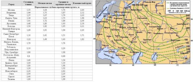Facteur déterminant le besoin d'isolation le tuyau d'égout est sans aucun doute la zone climatique dans laquelle vous résidez. Les habitants des régions du sud, où la température ne descendra peut-être même pas en dessous de zéro degré, n'en auront pas du tout besoin. Les régions restantes doivent être guidées par la profondeur de gel du sol. Pour vous permettre de décider plus facilement de la façon de choisir, consultez le tableau qui montre les données moyennes.