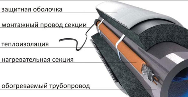 - Le chauffage - lorsque des méthodes plus modernes sont utilisées, par exemple, câble chauffant. Dans ce cas, l'isolation se produit en raison de la chaleur générée par le radiateur. Afin de minimiser les pertes de chaleur et de les diriger autant que possible vers le tuyau chauffé, il est en outre recommandé d'effectuer une isolation avec des matériaux avec une couche de papier d'aluminium.