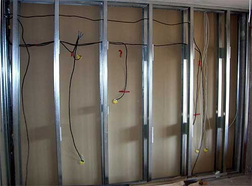 - Dans les pays européens, cette technologie d'installation implique nécessairement la présence de double couche de placoplâtre. Dans ce cas, la première couche est vissée vis aux profils, et le second est collé ou est également vissé à la première feuille en damier. Pour un renforcement supplémentaire entre les feuilles, un treillis de renforcement est collé à la colle PVA habituelle et fixé en plus avec des supports. Croyez-moi, un tel mur sera "mort". Cependant, il est conseillé de le faire si la taille du carreau est très grande et que vous avez peur qu'une couche de cloison sèche ne puisse tout simplement pas la supporter ou si le mur est très long.