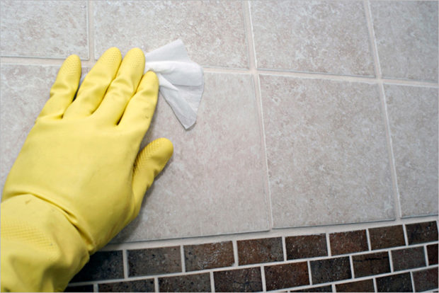 - Après 15-20 minutes, les carreaux peuvent être immédiatement essuyés avec un chiffon doux et humide. Il est donc beaucoup plus facile de laver les traces de la composition qu'après séchage complet;