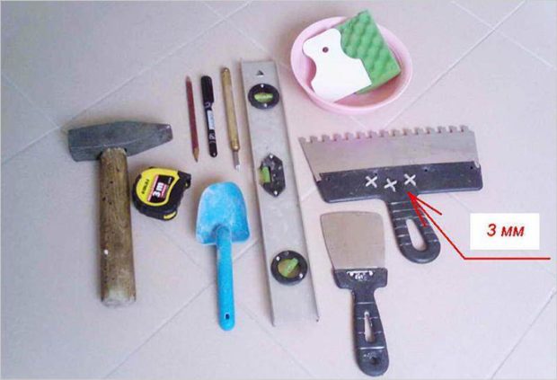 Avant de procéder à l'installation directe des carreaux, vous devez préparer à l'avance tous les outils dont vous pourriez avoir besoin. Peut-être que certains d'entre eux devront être mis en forme, et certains peuvent être complètement absents. Ce n'est qu'après vous être assuré d'avoir tout ce dont vous avez besoin que vous pouvez pétrir de la colle. Alors préparer: