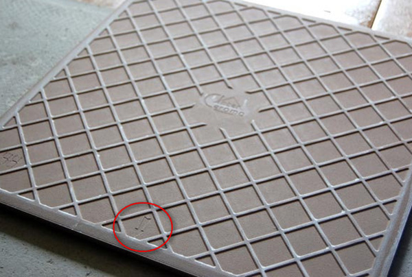 - Externe vue de côté seamy peut en dire long sur le produit. Les produits de qualité ont un ornement convexe répétitif, peuvent contenir une empreinte avec le nom du fabricant, des flèches indiquant le bon sens d'installation. Tous ces éléments doivent être et doivent être identiques les uns aux autres. Cela indique le processus de fabrication en usine et la bonne qualité. Carrelage avec un intérieur lisse est préférable de ne pas acheter;