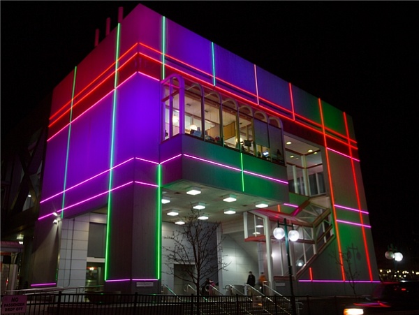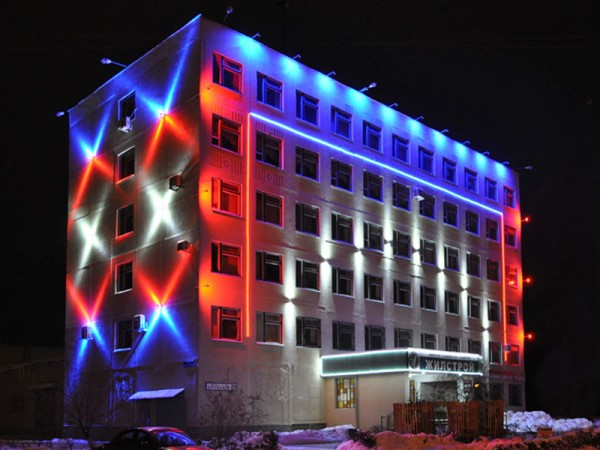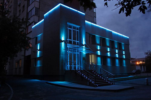 - Pour créer un éclairage spectaculaire des contours d'objets de configuration complexe, pour l'éclairage d'accentuation de parties individuelles de façades ou pour créer de la publicité extérieure, il est largement utilisé néon rétro-éclairage;