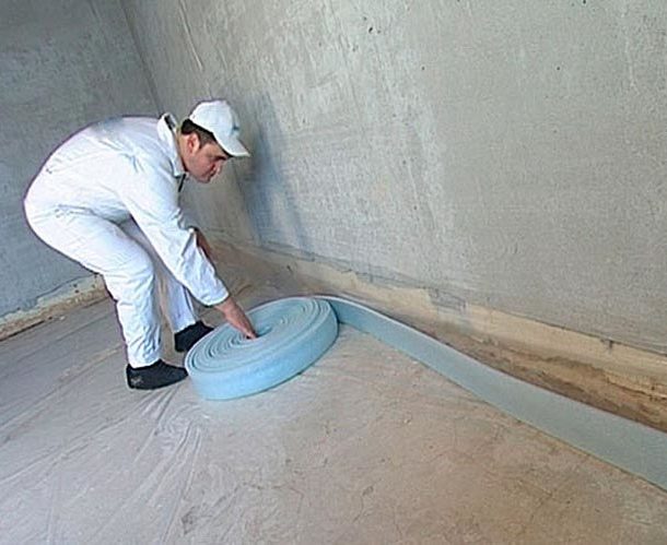 Pour information - traditionnel chape ciment-sable mélanges capables de se dilater avec l'augmentation de la température de 0,5 mm par mètre linéaire. Imaginez à quel point la chape dans la pièce va presser 10 mètres carrés sur les murs adjacents. Et si la maison est relativement neuve et rétrécie fondation pas encore complètement terminés, les murs progresseront. Avec un quai rigide avec sol en béton, la fissuration du béton sera impossible à éviter. Avec pour compenser l'expansion et pour minimiser tout type de stress, un ruban amortisseur est placé autour du périmètre de la pièce. Ainsi, la chape «vit» seule, sans affecter les murs, et ceux-ci, à leur tour, ne créent pas de contrainte sur le sol lors du retrait.