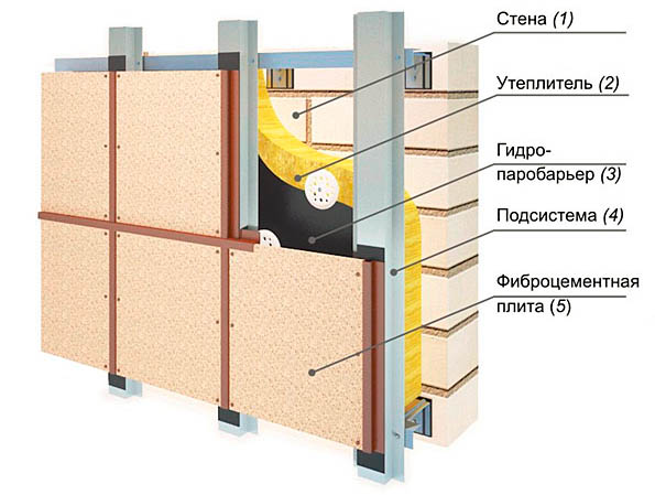 Cela évite la formation et l'accumulation de condensats et élimine l'excès d'humidité. Pour plus isolation des bâtiments entre le mur et la doublure peut être posé isolation en laine minérale. Mais notez que pour isolation du sous-solmieux utiliser panneaux de mousse de polystyrènequi ne passent pas et n'absorbent pas l'humidité. Les façades à charnières ont plusieurs avantages: