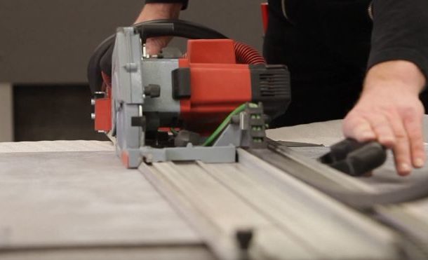 - Le sciage peut également se faire avec une scie sauteuse ordinaire. Après tout, ce n'est pas sans raison qu'on l'appelle un outil universel. Dans ce cas, la plaque est posée face vers le bas. La lame de scie doit être en carbure. Si votre scie sauteuse a une fonction pendule, il est recommandé de l'activer définitivement. Pour assurer l'immobilité de la plaque lors de la découpe est également nécessaire.