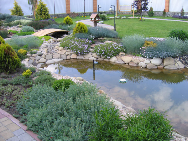 L'étang décoratif du pays a depuis longtemps cessé d'être quelque chose de spécial et de rare. Mais cela ne signifie pas du tout que cet élément du paysage est devenu obsolète et est devenu impopulaire. Les artificiels sont très demandés. étangs dans les chalets d'étésitué à une distance considérable du réservoir naturel. Mais quand je pars en vacances dans la nature, j'ai vraiment envie de contempler la surface de l'eau calme. Comme dit le proverbe - "regardez, et l'œil se réjouit." Par conséquent, de nombreux résidents d'été qui veulent transformer leur terre en un véritable lieu de loisirs et non de travail physique dur se demandent souvent «comment pouvez-vous faire un étang dans le pays de vos propres mains». Nous serons heureux de répondre à cette question et de vous 9 conseils pour un étang artificiel auto-organisé. Nous vous montrerons comment choisir le bon endroit pour l'étang, quelles plantes conviennent pour le décorer et comment rendre la zone côtière aussi naturelle et appropriée que possible. dans le style à la conception globale du site.