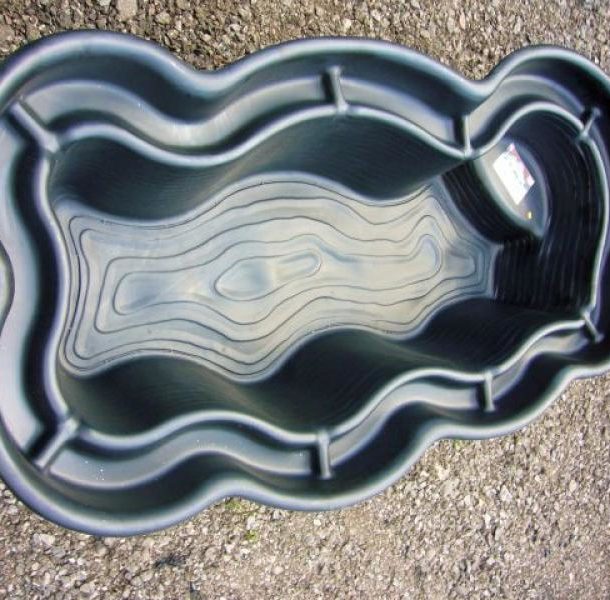 - Forme finie. Un tel bol peut être en matière plastique ou composite, comme la fibre de verre. Cette dernière option est plus coûteuse et est souvent utilisée pour créer des pools. Les murs peuvent avoir une teinte très différente, à la fois bleue et foncée. Les moules en plastique sont les plus couramment utilisés. Ils peuvent avoir une forme assez inhabituelle, mais sont limités en volume. Mais le processus de création d'un étang à l'aide d'un tel élément est plus simple et plus rapide. Des difficultés peuvent survenir avec l'auto-transport du formulaire, car il peut y être endommagé. De plus, un plastique mince peut se fissurer au froid.