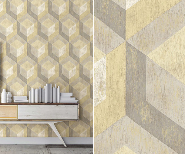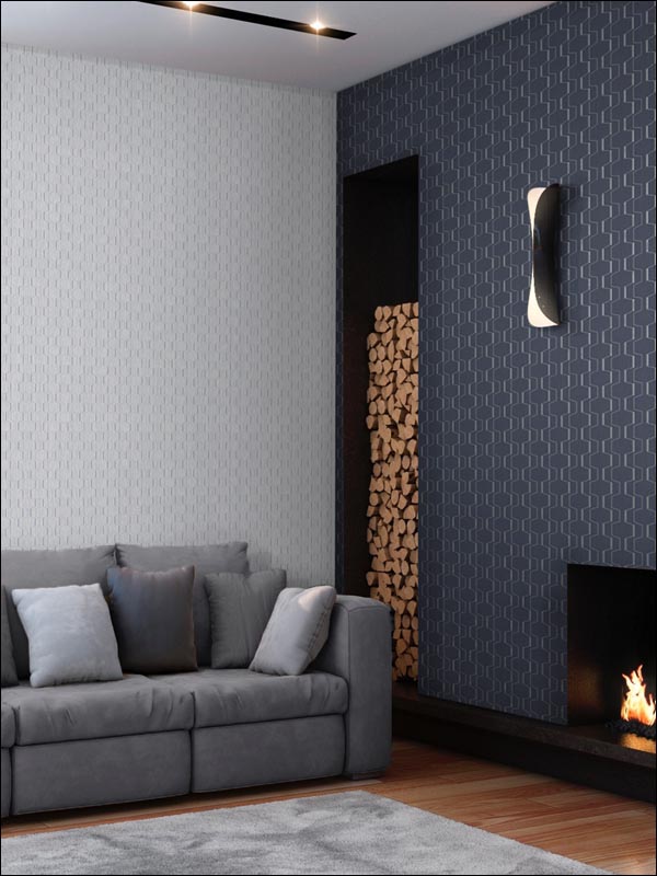 - Comme tout papier peint avec un motif, le motif géométrique a une sélection de rapport. Lorsqu'il s'agit de décorer une pièce entière, il peut y avoir quelques restes;