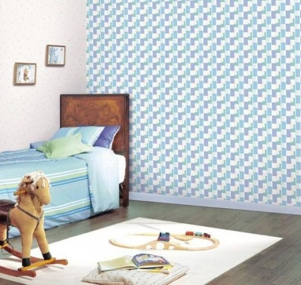 - Dans enfants chambres utilisant de tels papiers peints pour zoner facilement l'espace. Un endroit pour les jeux peut être plus dynamique et dynamique. L'aire de repos doit être neutre, avec un motif de taille moyenne, afin de ne pas irriter la psyché des enfants et de ne pas provoquer une concentration involontaire d'attention et de tension. Le motif doit être petit et peu fréquent;