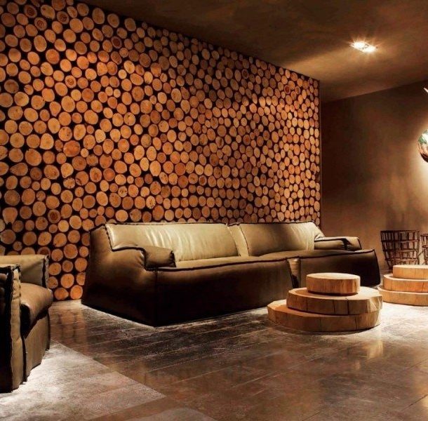 - Dans salon Un tel papier peint distingue souvent une zone TV ou un mur derrière un canapé. Une histoire populaire est un panneau de coupes de scie en bois. Les finitions en bois iront bien avec au coin du feu en bois, le cas échéant. De plus, la texture du bois est bien adaptée à des revêtements de sol tels que revêtement de sol stratifié ou planche de parquet et certains types de tapis. Le plus avantageux dans un tel contexte ressemblera à des meubles style classique ou forme simple;