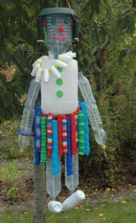 Ou même combiner ces deux matériaux. Un tel épouvantail sera fort brille au soleil et secoue bruyammentque les oiseaux n'aimeront pas beaucoup.