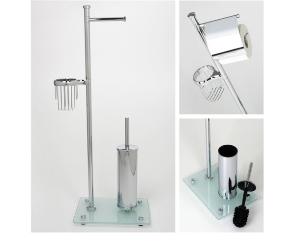 - Brosse pour les toilettes. Cet élément peut être constitué de plusieurs matériaux - plastique coloré ou transparent, métal, une combinaison de matériaux. Le style et le design sont également très divers. La principale chose à laquelle vous devez faire attention lors du choix est le type de montage. Les brosses peuvent être extérieures, qui sont simplement placées à côté de cuvette de toilette dans un endroit pratique, ou fixé au mur, qui sont fixés au plan du mur à l'aide de ventouses ou de vis. Cette solution est plus moderne et plus pratique en termes de nettoyage. Il élimine également le risque de retourner accidentellement le récipient pour la brosse. Les inconvénients incluent le fait que l'élément "vole" une section du mur et si le modèle avec la fixation en forme de vis a été choisi, la brosse sera non portable. Sinon, des traces resteront sur le mur. Les structures de plancher et de mur peuvent avoir une enceinte ouverte ou fermée. Le premier est moins esthétique, mais la brosse sèche plus rapidement, ce qui empêchera l'apparition de bactéries nocives. Les modèles fermés ont l'air plus soignés;