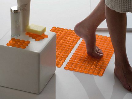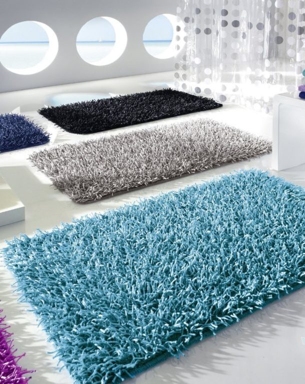 - Tapis de sol - non seulement rendre le processus de marche sur le sol froid plus confortable, mais aussi responsable de votre sécurité. Ayant déposé avant bain ou salle de douche un petit tapis, vous n'avez pas à vous soucier que vous ou votre enfant glissiez sur le sol mouillé. Les tapis en mousse de polyéthylène ou en caoutchouc sont très courants. Souvent, ils sont vendus pour une coupe, ont beaucoup d'options pour les couleurs et les motifs, ne bougent pas sur le carreau et sont doux et agréables. Plus "chauds" sont des tapis en textile synthétique à poils longs ou peu velours. Il existe également des tapis en microfibre qui absorbent parfaitement l'humidité. Lors du choix d'un tapis en tissu, faites attention à son revers. Il est nécessaire qu'il ait un revêtement caoutchouté qui empêchera le glissement. De même couleur et matériau de fabrication, vous pouvez ramasser un tapis posé devant les toilettes. Le plus souvent, ces deux types de tapis sont combinés en ensembles;