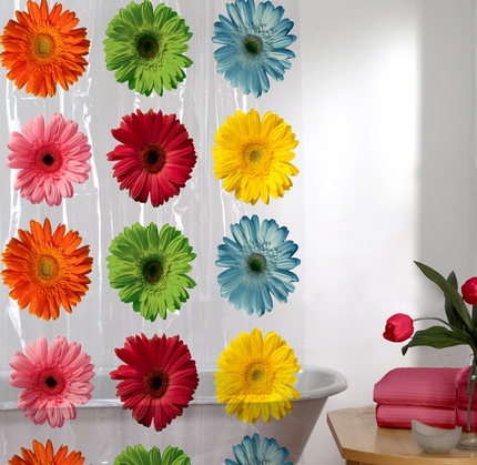 - Rideau Cet élément combine à la fois une fonction décorative et pratique. Pare-baignoire permettra à une personne prenant une douche de prendre sa retraite au cas où la salle de bain serait combinée. De plus, le rideau protégera les meubles adjacents d'une exposition constante à l'humidité, de l'apparition de traces de mousse savonneuse. Le rideau dans sa conception peut soit fusionner complètement avec le jeu de couleurs général, soit agir comme un accent de couleur. Dans ce dernier cas, tous les autres gros accessoires, en particulier les tapis et les serviettes, devraient avoir une couleur moins expressive, surtout si la pièce est trop petite zone. N'oubliez pas que dans certaines maisons sont présentes ouvertures de fenêtres dans la salle de bain, qui ont sans aucun doute besoin de rideaux. Le choix est basé sur des considérations pratiques et sur le style général de la pièce. Le matériau de performance doit être résistant aux extrêmes d'humidité et de température. Vous pouvez également envisager storesqui s'intègrent parfaitement à l'intérieur dans un style moderne ou style minimaliste. Stores enrouleursdont les toiles sont imprégnées de composés spéciaux résistants à l'humidité et aux ultraviolets. Cette solution peut être qualifiée d'universelle et pratique à utiliser.