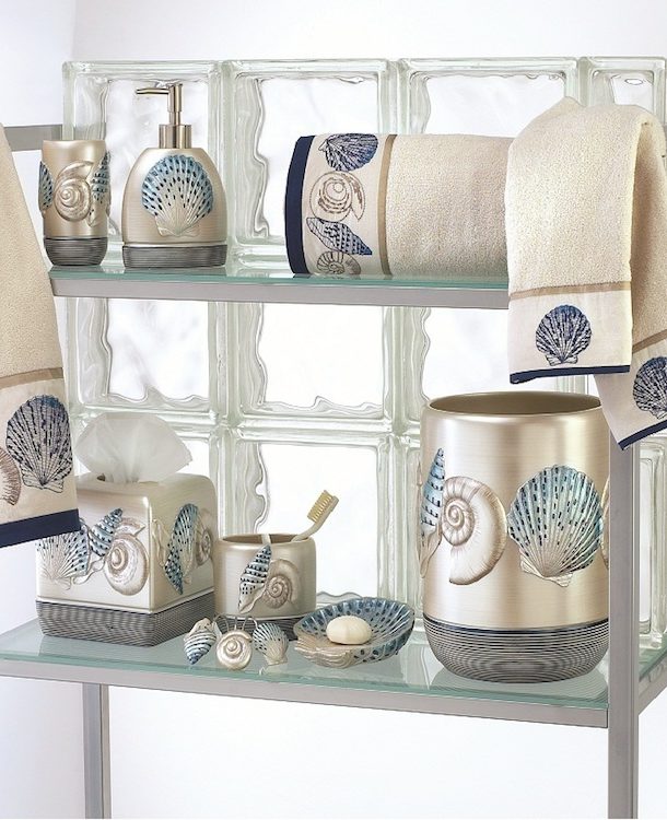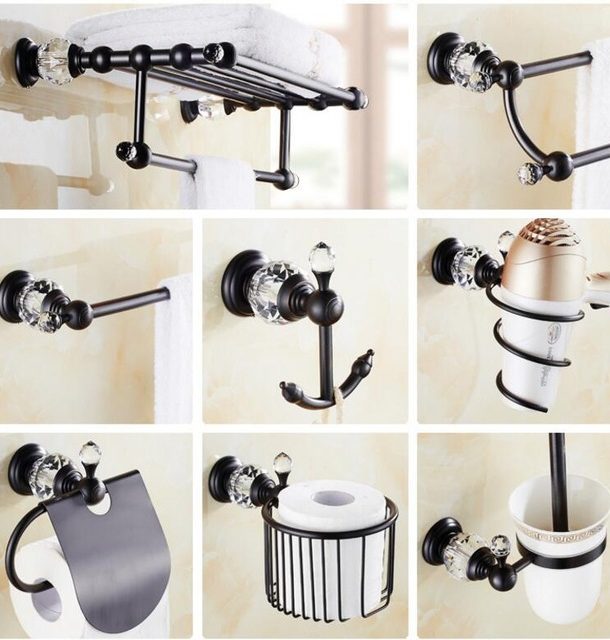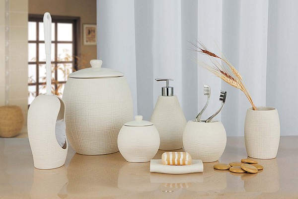 - Matériel de production les articles doivent être en harmonie avec le matériau de décoration de la pièce. Ne vous efforcez pas de rendre l'intérieur plus riche et plus luxueux en raison d'accessoires coûteux en céramique naturelle ou en verre, si les murs sont cousus avec du plastique bon marché. Un contraste net sera créé. De plus, les accessoires doivent être combinés dans le matériau et entre eux. De belles tasses en verre et un porte-savon avec de la peinture seront inappropriés sur les étagères en plastique;