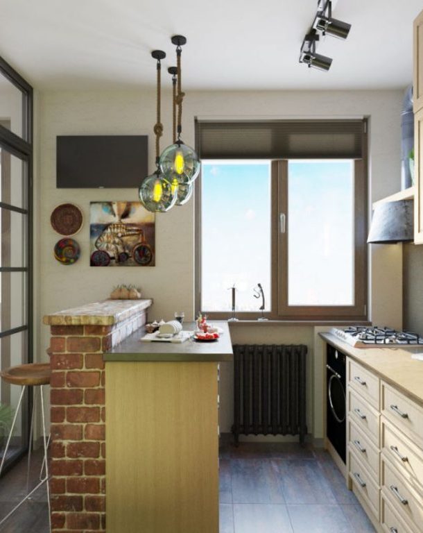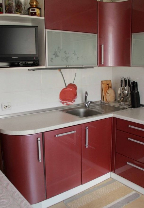 - Par exemple, si la cuisine combiné avec balcon ou loggiamais en même temps, le rebord de la fenêtre n'a pas été démonté et agit comme une petite île de travail, la télévision peut être mise à sa surface;
