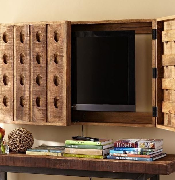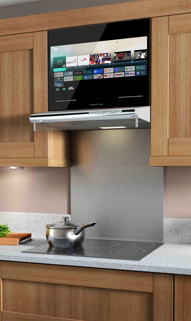 - Une autre façon inhabituelle consiste à installer un téléviseur sur incliné la surface cuisine hottes ou sur le conduit de ventilation. Étant donné la vitesse à laquelle la graisse et la poussière se déposent filtres de hotte, nous pouvons conclure que le téléviseur devra être essuyé très souvent;