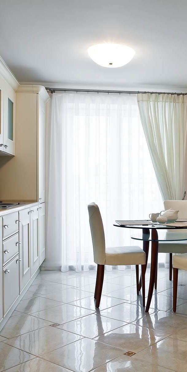- La hauteur idéale pour le téléviseur est au niveau des yeux. Lors du choix, évaluez votre comportement dans la cuisine - êtes-vous plus susceptible de vous asseoir ou de vous tenir debout? En fonction de cela, choisissez une hauteur;