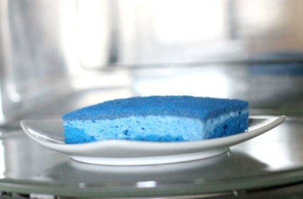 Mettez une éponge sur une soucoupe et mettez au micro-ondes; - Allumez l'appareil à puissance moyenne pendant 20-30 secondes;