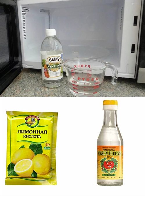 Si vous utilisez souvent votre appareil pour décongeler des aliments comme la viande, la volaille ou le poisson, vous avez probablement remarqué qu'une caractéristique mauvaise odeur. Dans la lutte contre un tel «arôme» persistant, la soude peut être impuissante, il est donc préférable d'utiliser du vinaigre ou de l'acide citrique. Assurez-vous d'ouvrir les fenêtres pour la ventilation, car le processus sera accompagné d'une odeur âcre.