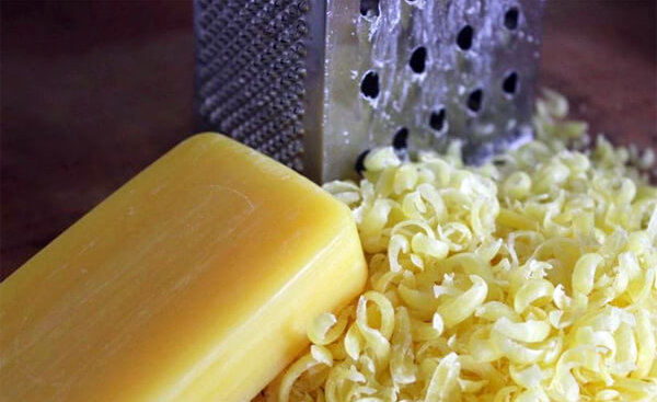 - Un petit morceau de savon est frotté sur une râpe fine et versé avec une petite quantité d'eau bouillante;