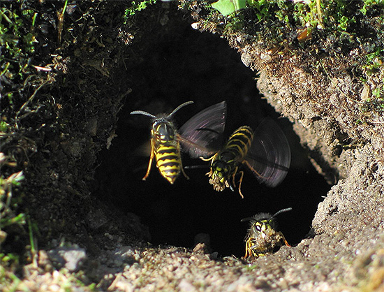 Si aucun endroit approprié n'a été trouvé, les guêpes peuvent construire un nid dans le sol. Dans ce cas, il représentera un trou dont la profondeur et la durée peuvent atteindre des dimensions impressionnantes.