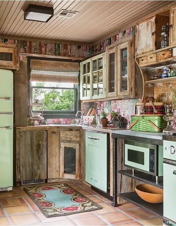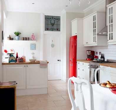 Si vous avez choisi un style inhabituel de shabby chic ou populaire provence Pour décorer votre cuisine, les teintes rose pâle, bleu, vert, lilas, crème conviennent à un tel intérieur. Et le réfrigérateur lui-même devrait avoir des bords arrondis et des contours légèrement convexes;