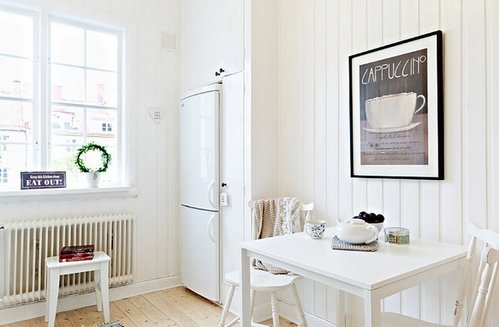 - Si petite pièce privilégiez les couleurs plus claires du réfrigérateur. Cela évitera l'effet de cacher l'espace et les tons pastel légers rendront un objet lourd visuellement moins global;