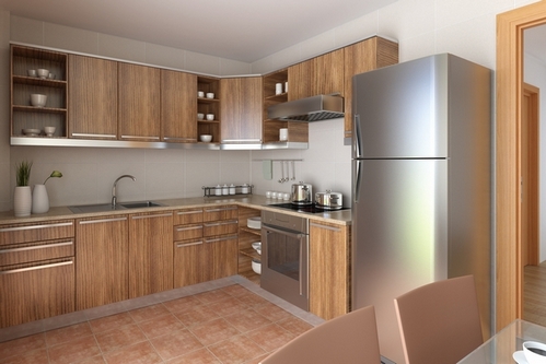 Le réfrigérateur dans cette conception sera combiné avec un groupe de salle à manger en bois, fond d'écran photo sur un mur d'accent avec une image d'une forêt, en bois stores pour fenêtres ou plancher en bois. Ce sera également choix optimal en matière de sélection d'équipements dans une maison privéeconstruit du bois. Un réfrigérateur intégré de cette couleur peut devenir presque invisible sur le fond des murs en bois. À l'intérieur petites cuisines dans les appartements standards, il est préférable de privilégier les teintes claires en bois. Ensuite, l'intérieur se révélera chaleureux et confortable, et la pièce semblera plus spacieuse.