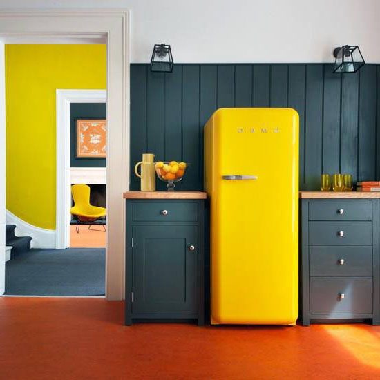 Un réfrigérateur de couleur est un facteur contraignant dans la création de l'intérieur dans son ensemble.