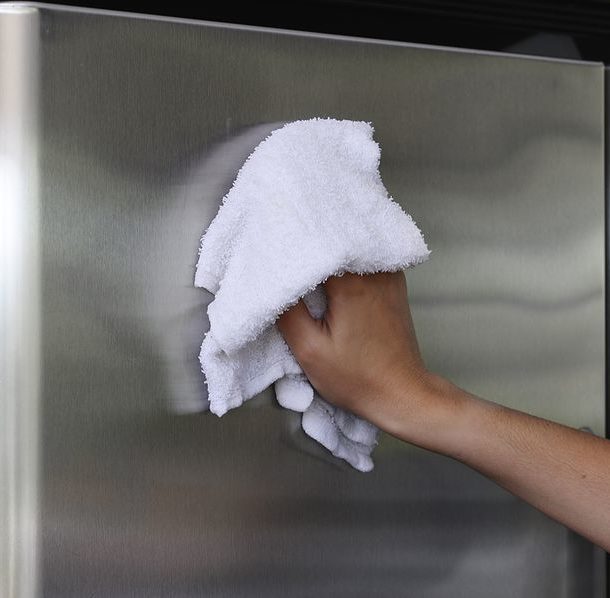 - Après le polissage, vous pouvez utiliser de l'huile pour polir l'extérieur de l'acier inoxydable après le lavage. Quelques gouttes sont appliquées sur un chiffon doux et frottées sur le réfrigérateur. Mais gardez à l'esprit que même la couche d'huile la plus fine et non palpable accumule la pollution beaucoup plus rapidement;