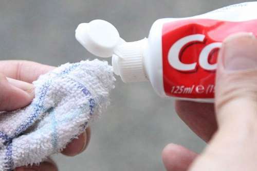 - Si les taches persistent, appliquez une petite quantité de dentifrice sur la tache, attendez 10 minutes et frottez la tache avec le côté doux de l'éponge. Le dentifrice contient des substances abrasives très douces qui ne peuvent pas laisser de traces sur une surface brillante;