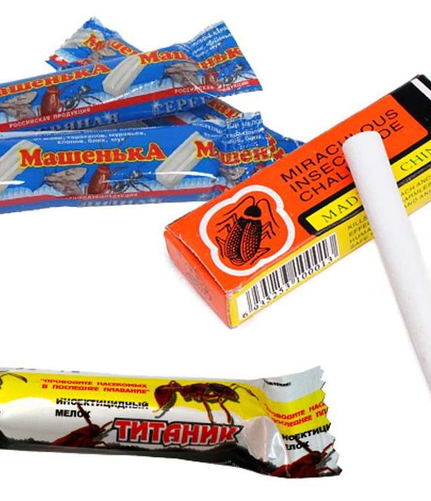 Ils sont pratiques à appliquer, mais il est presque impossible de traiter les taches difficiles à atteindre. De plus, il n'y a aucun moyen de traiter toute la pièce. Les crayons et les poudres peuvent être utilisés à l'intérieur, ils sont inoffensifs pour les humains et les animaux. Mais s'il y a beaucoup de cafards dans la maison, ces fonds peut être inefficace. Ils peuvent être utilisés comme prophylaxie après un traitement avec des médicaments plus puissants. Les outils suivants ont fait leurs preuves: