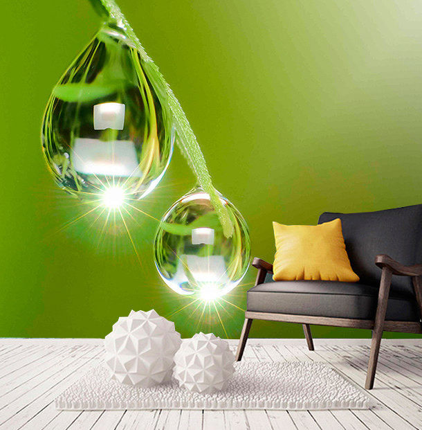 - 3-D fond d'écran photo. L'image sur de telles toiles a un volume et ressemble «à un vivant». L'intrigue de ces papiers peints peut être très diversifiée. Les toiles aux grandes formes géométriques, aux grandes fleurs, aux gouttes ou à l'abstraction ont acquis une immense popularité. De plus, un paysage naturel ou urbain avec une perspective peut être représenté. Un tel choix de dessin réussira pour petite pièce, qui doit être rendu plus spacieux visuellement;