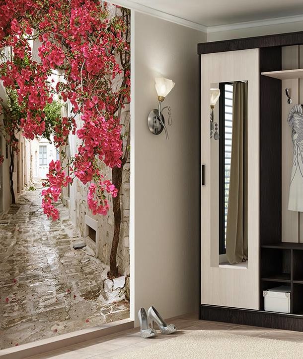 Choix du matériau doit être considéré non seulement le coût du papier peint, mais aussi conditions leur opération. Si fotopolon sera monté à proximité immédiate de porte d'entrée, il convient de noter qu’ils seront constamment exposés à différents types de pollution. Ce sont des éclaboussures d'eau provenant de vêtements mouillés ou d'un parapluie, et des empreintes digitales, si vous êtes habitué à des chaussures / chaussures, appuyé contre un mur, et des éclaboussures sales de chaussures ou après avoir marché avec un chien par mauvais temps. Par conséquent, le papier peint devra souvent être essuyé avec une éponge humide. Optimal choix pour couloir il y aura des peintures murales en vinyle ou non tissées. Si des photocopters seront montés sur le mur opposé à la porte d'entrée ou utilisés pour créer des peintures ou de fausses fenêtres, les variétés de papier conviennent également. L'essentiel est qu'ils ne soient pas exposés à la lumière directe du soleil.