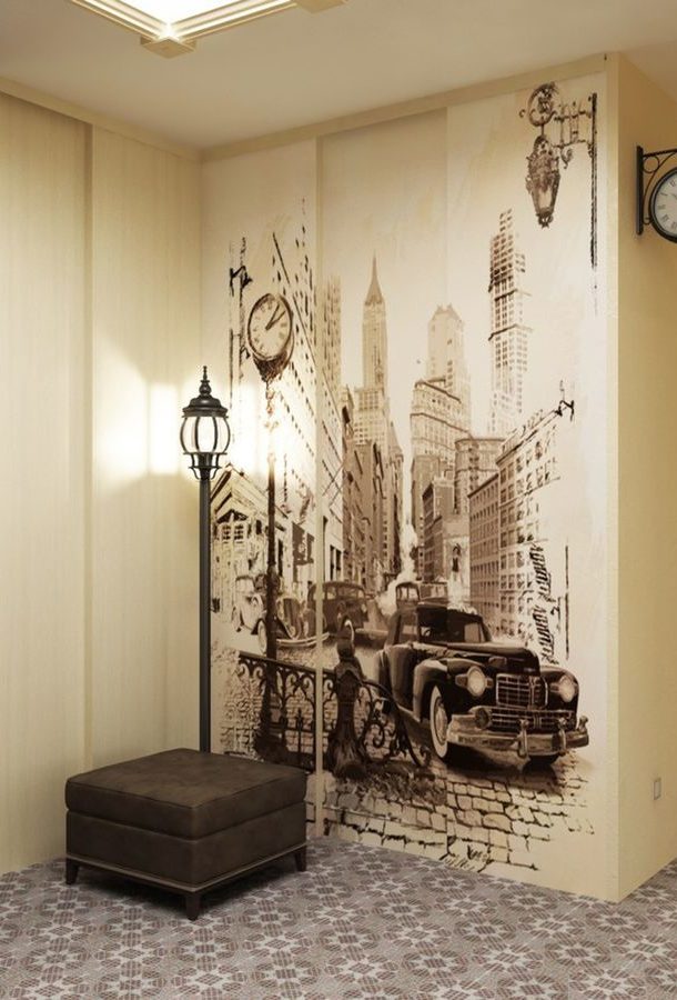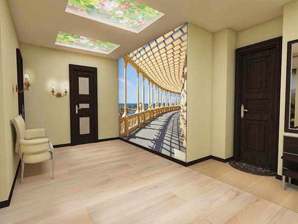 Il est très important de choisir un fond d'écran photo pour que l'image sur eux soit en harmonie avec le général style couloir. Par exemple:
