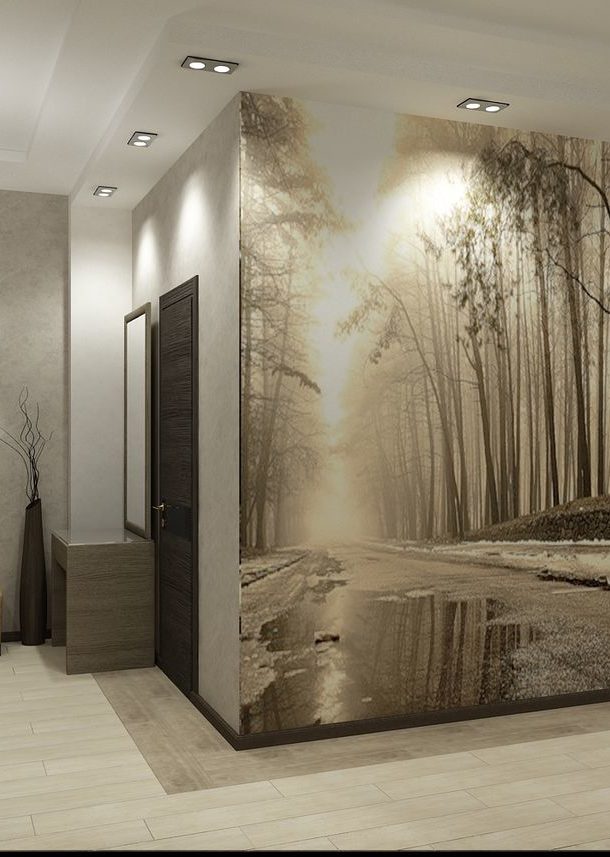 - Si couloir au contraire aussi compressé sur le mur en face de la porte d'entrée, vous devez placer un papier peint avec une image d'un chemin forestier s'étendant loin dans les profondeurs de la forêt et d'autres images avec un effet de perspective.