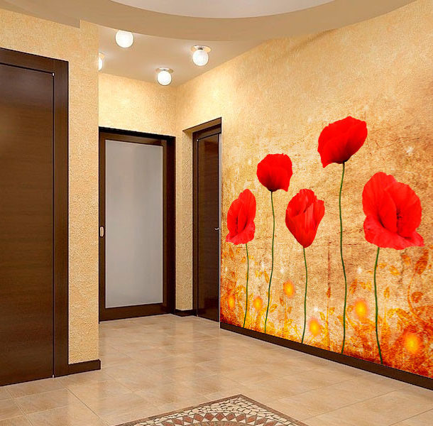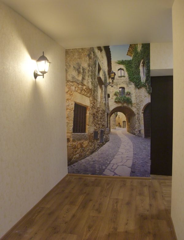 Choix du matériau doit être considéré non seulement le coût du papier peint, mais aussi conditions leur opération. Si fotopolon sera monté à proximité immédiate de porte d'entrée, il convient de noter qu’ils seront constamment exposés à différents types de pollution. Ce sont des éclaboussures d'eau provenant de vêtements mouillés ou d'un parapluie, et des empreintes digitales, si vous êtes habitué à des chaussures / chaussures, appuyé contre un mur, et des éclaboussures sales de chaussures ou après avoir marché avec un chien par mauvais temps. Par conséquent, le papier peint devra souvent être essuyé avec une éponge humide. Optimal choix pour couloir il y aura des peintures murales en vinyle ou non tissées. Si des photocopters seront montés sur le mur opposé à la porte d'entrée ou utilisés pour créer des peintures ou de fausses fenêtres, les variétés de papier conviennent également. L'essentiel est qu'ils ne soient pas exposés à la lumière directe du soleil.