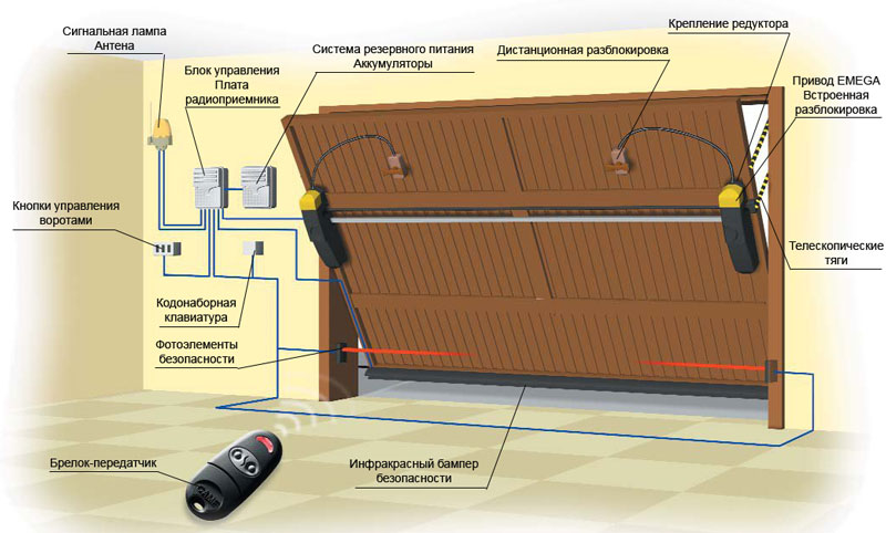 L'arbre est enfermé dans une boîte de protection, qui peut être montée à l'extérieur et à l'intérieur du garage. Leur les avantages sont: