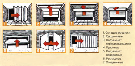 Si l'espace devant ou sur le côté de la porte est limité, des portes coulissantes ou élévatrices suffiront; - Si au premier plan est la sécurité - choisissez le type de guillotine de levage.