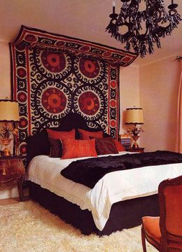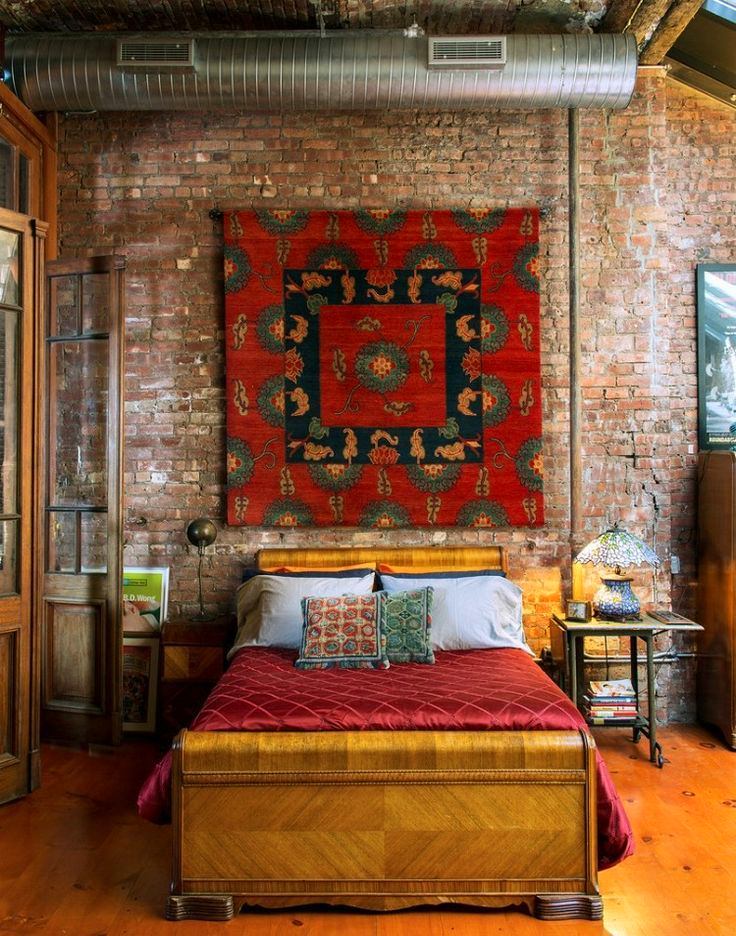 Vous pouvez utiliser un tapisla soie, avec du tissu de tapisserie, persan, des couleurs vives ou avec des motifs de l'Inde, de l'Orient, mais s'il y a un déséquilibre dans la palette de couleurs, le choix du tapis mural peut ne pas être difficile.